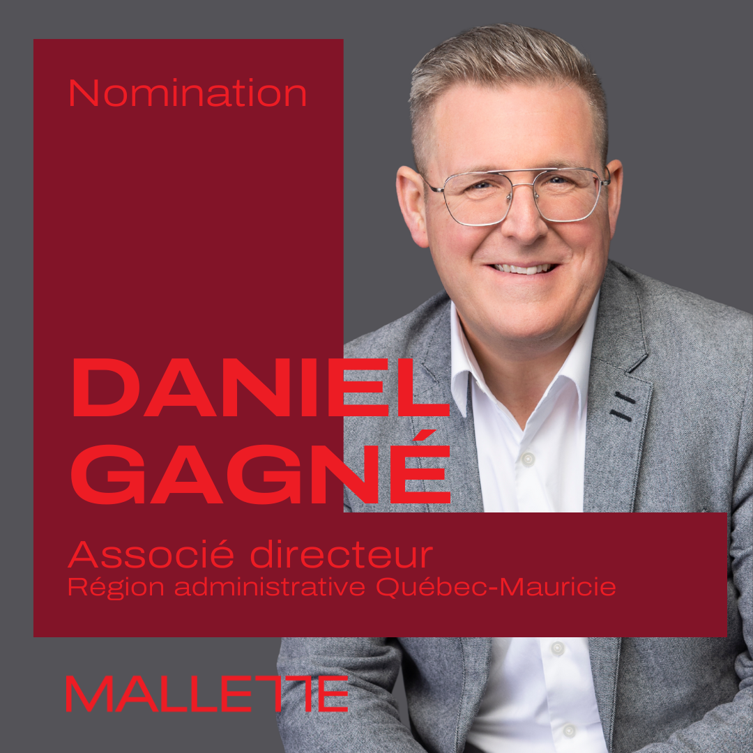 Nous avons le plaisir d’annoncer la nomination de Daniel Gagné au poste d’associé directeur de la région administrative de Québec-Mauricie, effectif au 1er septembre 2025. Il succède à Mario Bédard, FCPA, qui continuera d’agir en tant qu’associé-conseil.